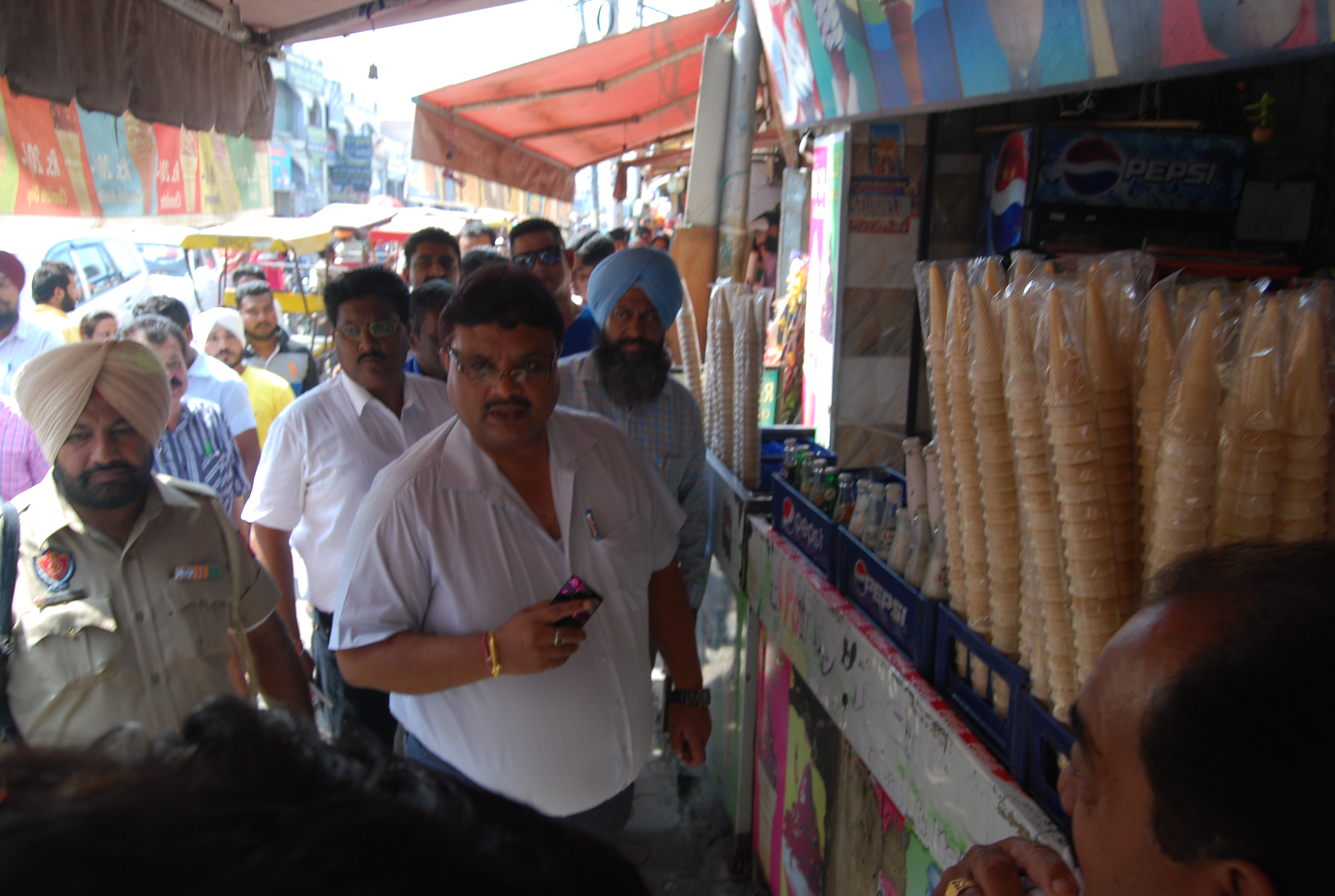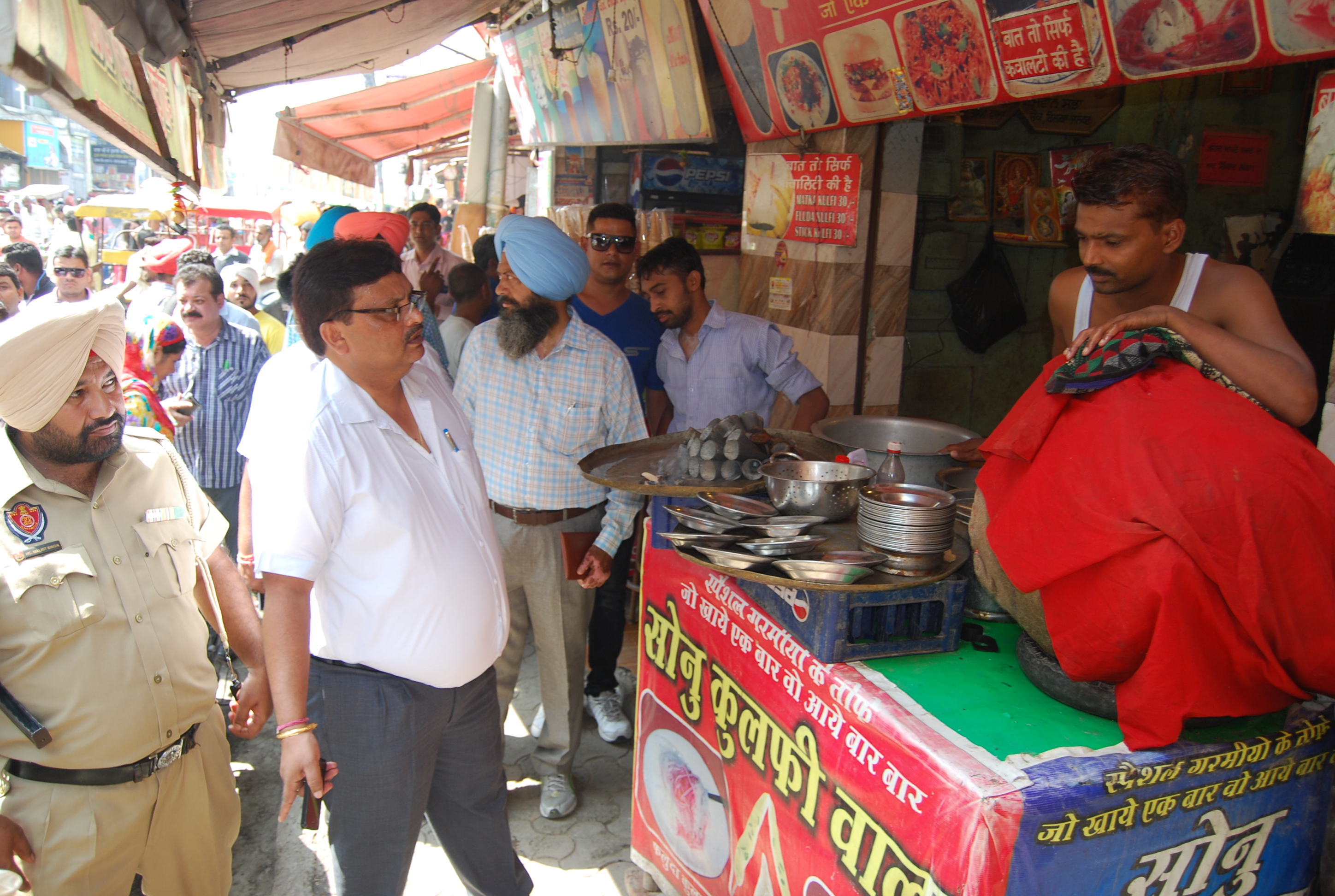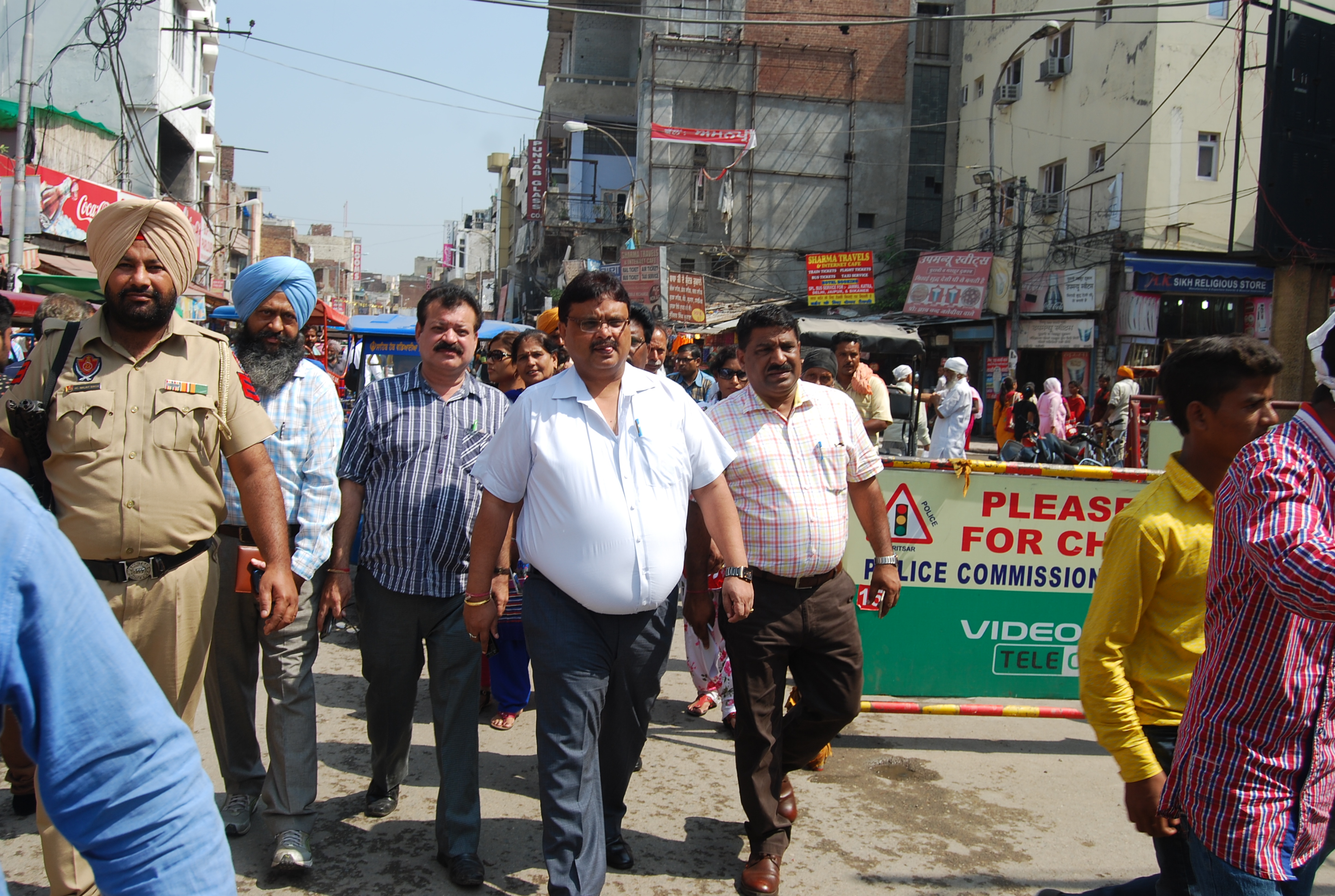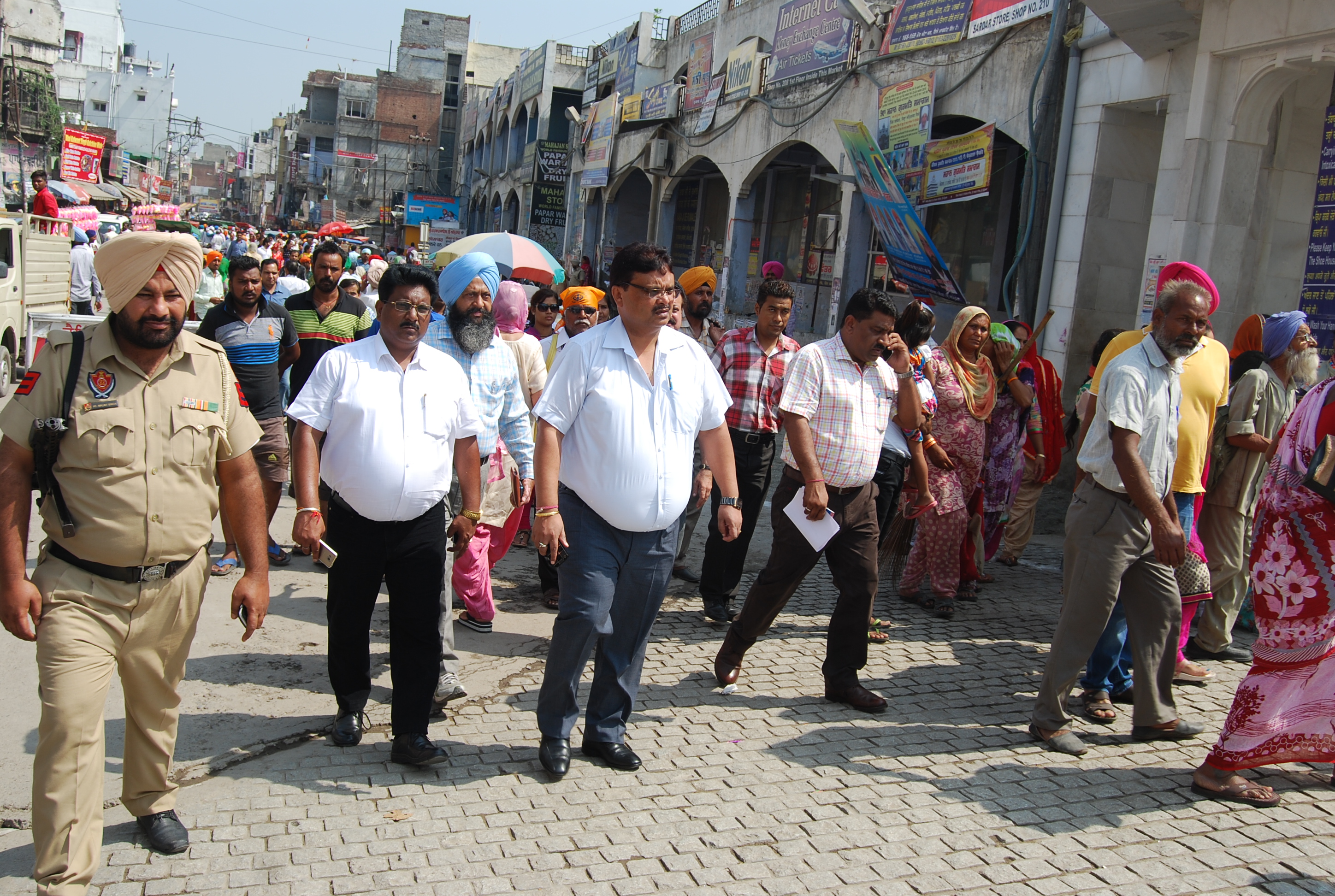 Sh. Pardeep Sabharwal, IAS, Commissioner, Municipal Corporation along with Dr. Raju Chohan, Medical Officer of Health and others interacting with the shopkeepers regarding keeping their area neat and clean around Shri Golden Temple.