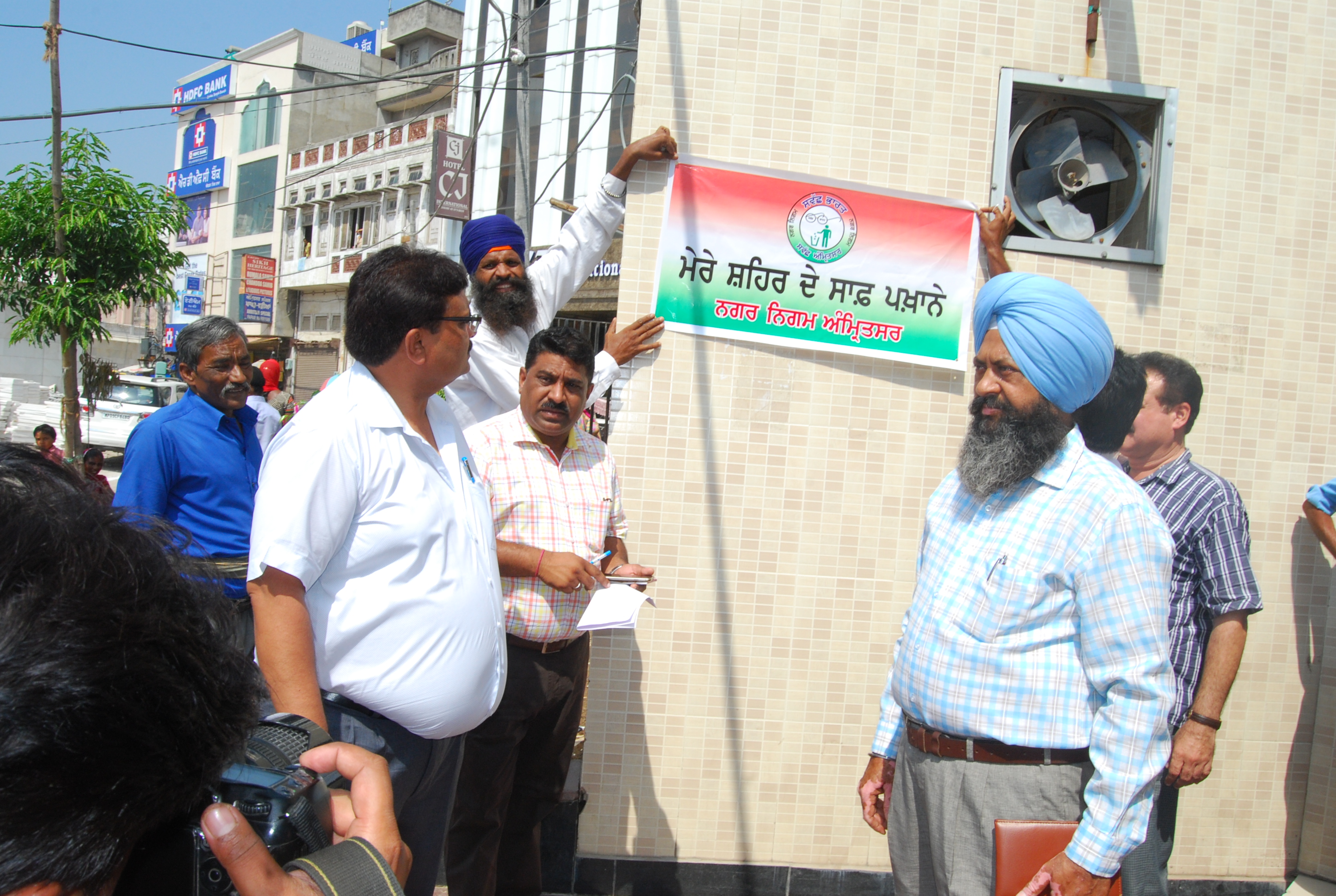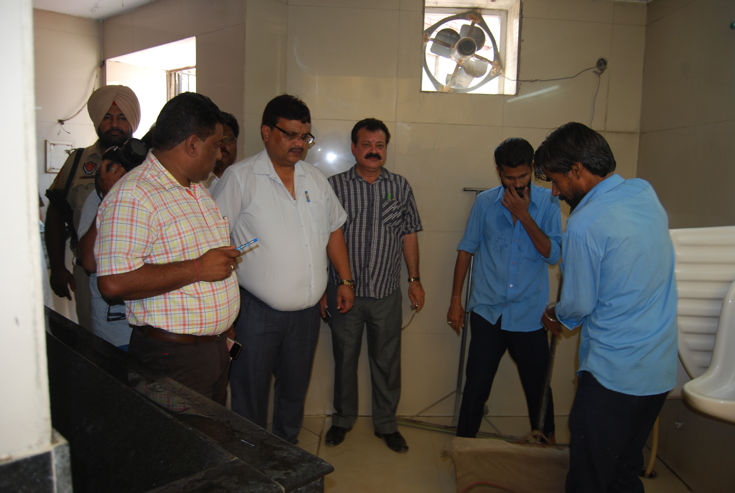 Inspection of sanitation, cleanliness of toilets on the eve of Nation wide Sanitation/Cleanliness Campaign around area of Shri Golden Temple by Sh. Pardeep Sabharwal, IAS, Commissioner, Municipal Corporation along with Dr. Raju Chohan, Medical Officer of Health and directed MOH and staff to ensure proper sanitation & cleanliness of toilets area around of Shri Golden Temple.