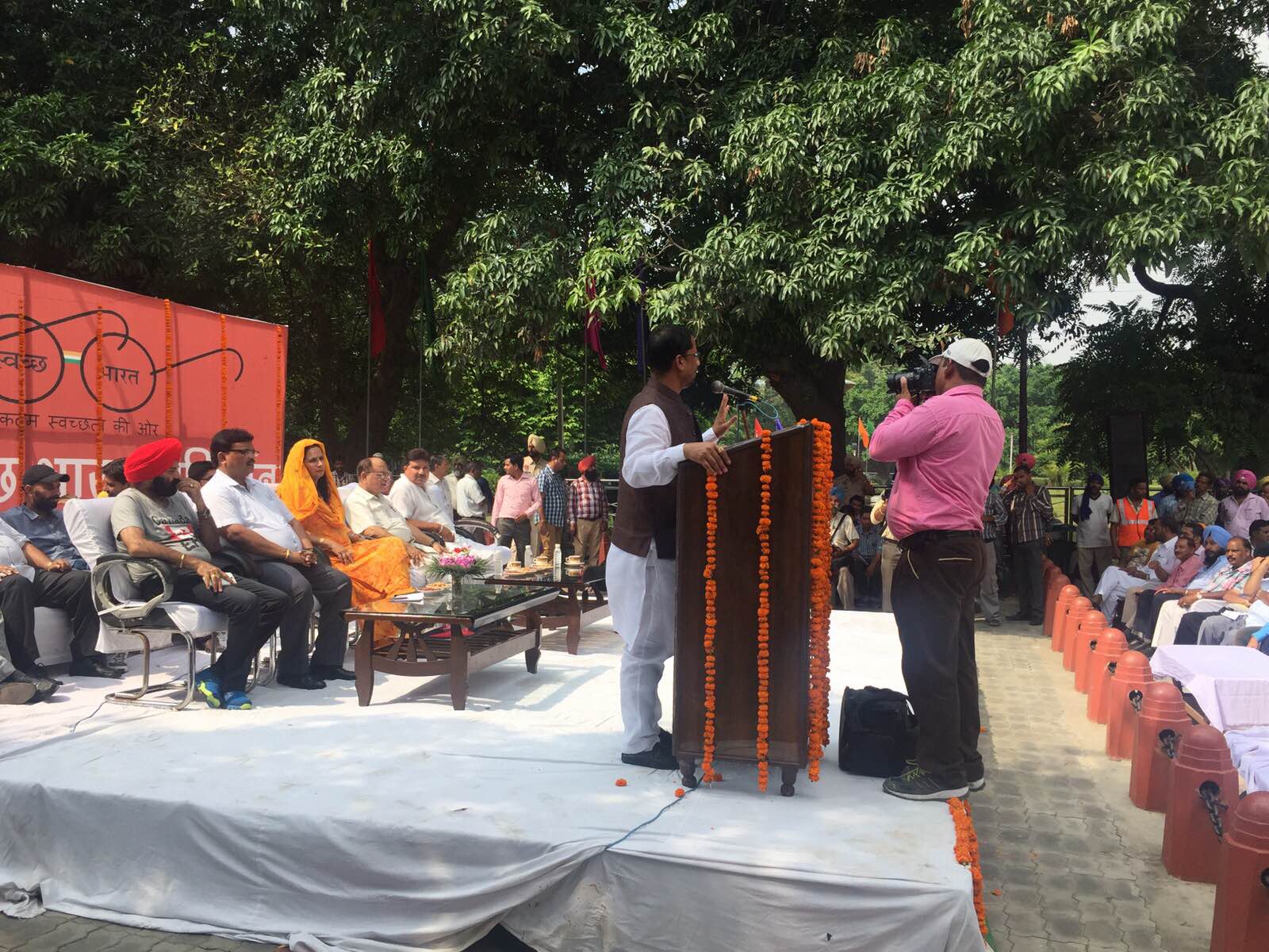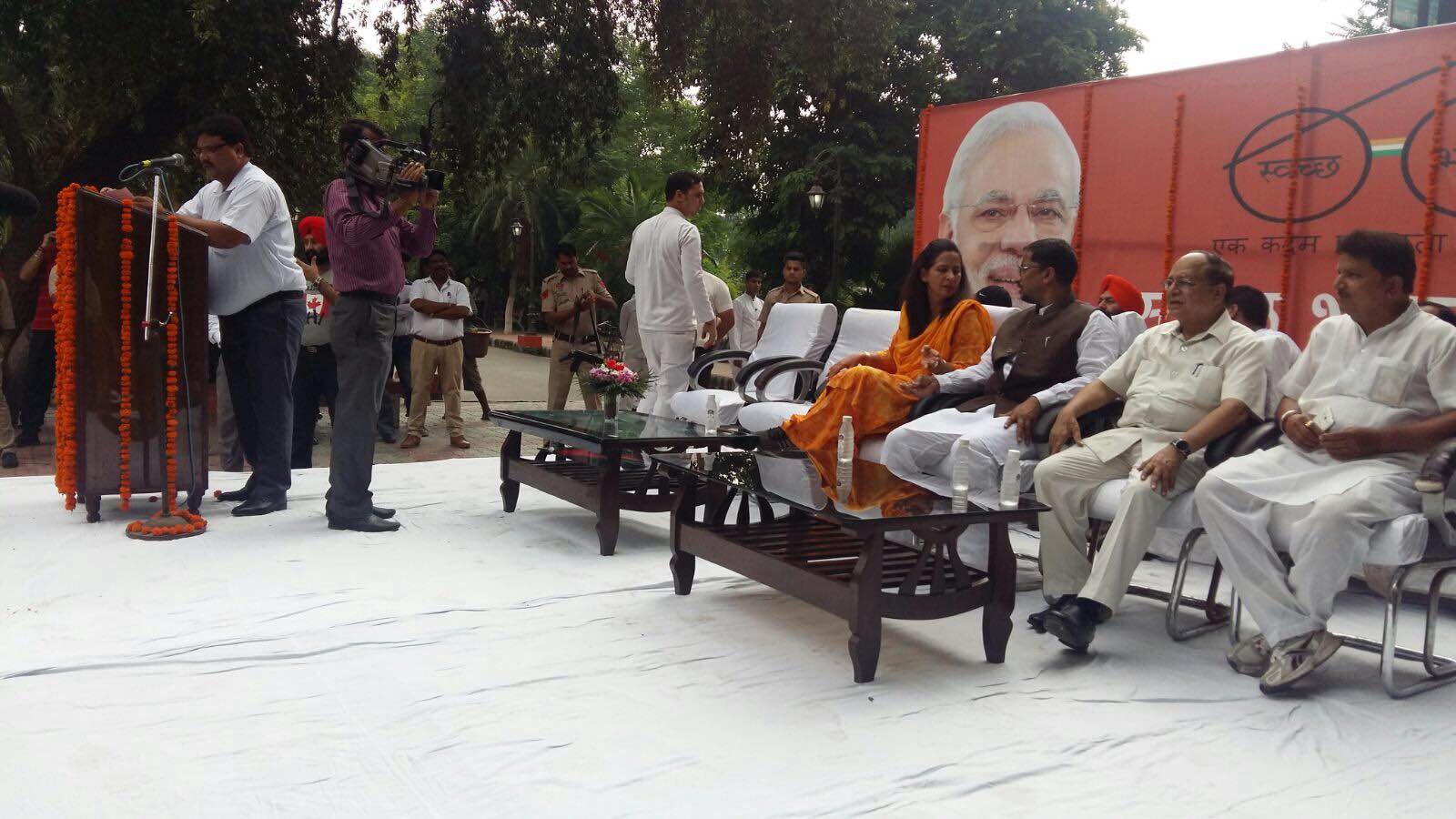 Honorable Sh. Anil Joshi Ji, Local Government Minister and Medical Education and Research Minister, Punjab “Flags Off” Auto Rickshaws and Cycle Rickshaws with Public Awareness Message regarding Swachh Bharat Mission to bring awareness amongst the masses on the eve of Nation wide Sanitation/Cleanliness Compaign Program along with Sh. Bakshi Ram Arora, Mayor, Municipal Corporation, Amritsar, Mrs. Navjot Kaur Sidhu, Chief Parliamentary Secretary and Sh. Pardeep Sabharwal, I.A.S., Commissioner, Municipal Corporation, Amritsar at a Public Gathering organized at Ram Bagh, Amritsar.