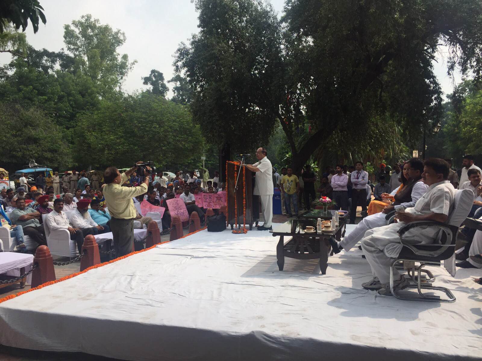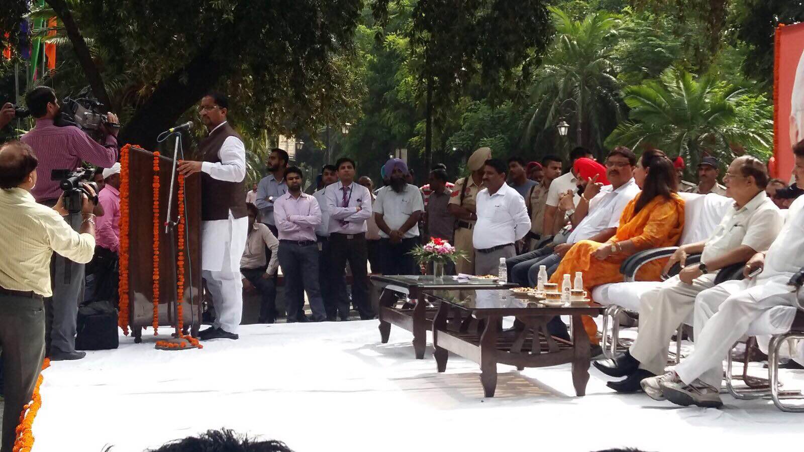 Honorable Sh. Anil Joshi Ji, Local Government Minister and Medical Education and Research Minister, Punjab releases Audio Cassette to bring about the awareness of Sanitation and Cleanliness amongst the citizens on the eve of Nation wide Sanitation/Cleanliness Compaign Program along with Sh. Bakshi Ram Arora, Mayor, Municipal Corporation, Amritsar, Mrs. Navjot Kaur Sidhu, Chief Parliamentary Secretary and Sh. Pardeep Sabharwal, I.A.S., Commissioner, Municipal Corporation, Amritsar at a Public Gathering organized at Ram Bagh, Amritsar.